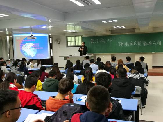 讲座上,姜源通过对精准医疗临床应用的典型案例引入。精准医疗,癌症治疗领域新兴起的前沿技术,可以根据患者的基因检测结果分析,针对性的用药或实施精准治疗。接着,姜源向同学们普及了关于CTC检测等相关知识,并从精准医疗的提出、发展及今后的发展方向做了深入的讲解。